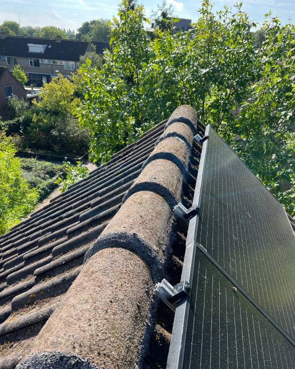 - Stormvaste bevestiging met moderne dakmortel (zoals Flexim)
